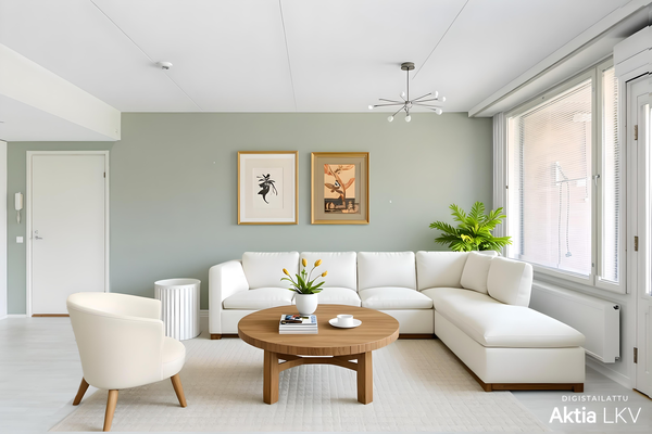 Tässä 93 m²:n ensimmäisen kerroksen kodissa on avara olohuone, jonka yhteydessä moderni avokeittiö. Olohuoneesta on käynti lasitetulle parvekkeelle, joka tuo lisää asumismukavuutta ympäri vuoden. Asunnon ikkunat avautuvat kolmeen suuntaan, mikä tekee tiloista valoisat ja avarat.