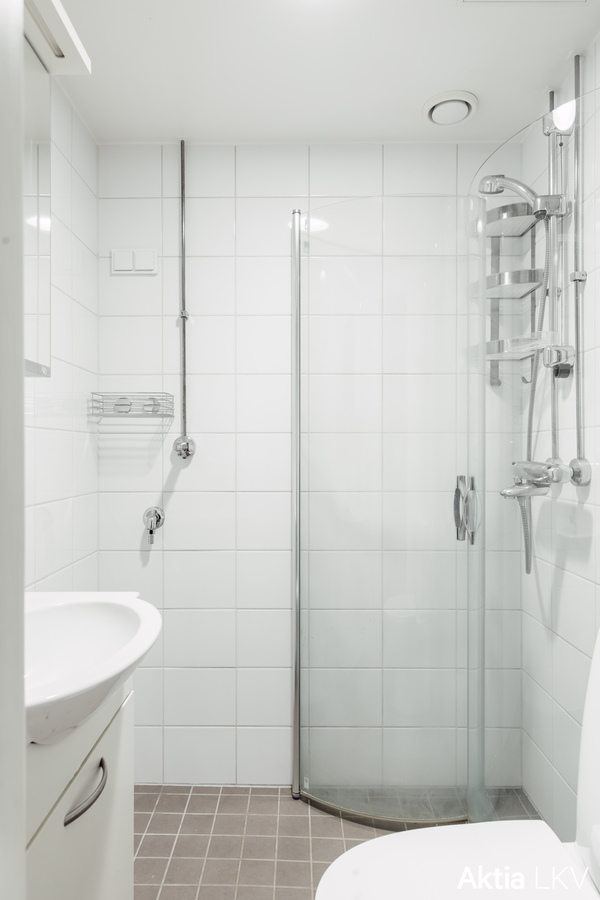 Rummet har stort fönster och en kokvrå som är öppen mot rummet. Badrummet är uppdaterat 2013 vid stambytet. Bostaden har ett rymligt förråd i källaren.