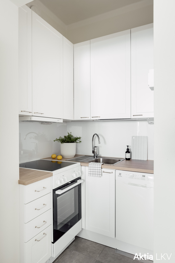 Viidennen kerroksen yksiö jossa ikkuna on valoisaan länteen. Täysin remontoitu asunto; tilava kylpyhuone on uusittu, keittiö on täysin uusittu sekä huone on maalattu. Keittiössä täysikokoinen jääkaappi-pakastin sekä astianpesukone. Taloyhtiössä on kattoterassi, josta on upeat näkymät merelle ja puistoon. 5.krs, hissi.