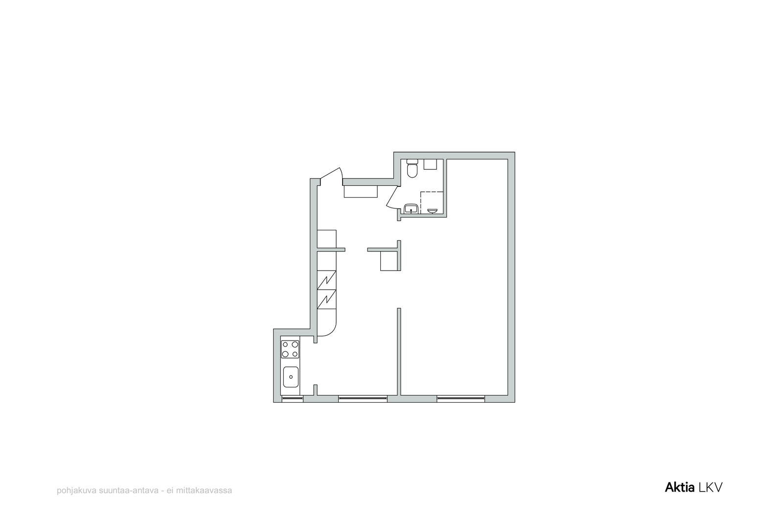 Asunnossa on nykyisellään alkovi ja keittiösyvennys. Huoneistopohja on muokattavissa omien tarpeidesi mukaan.