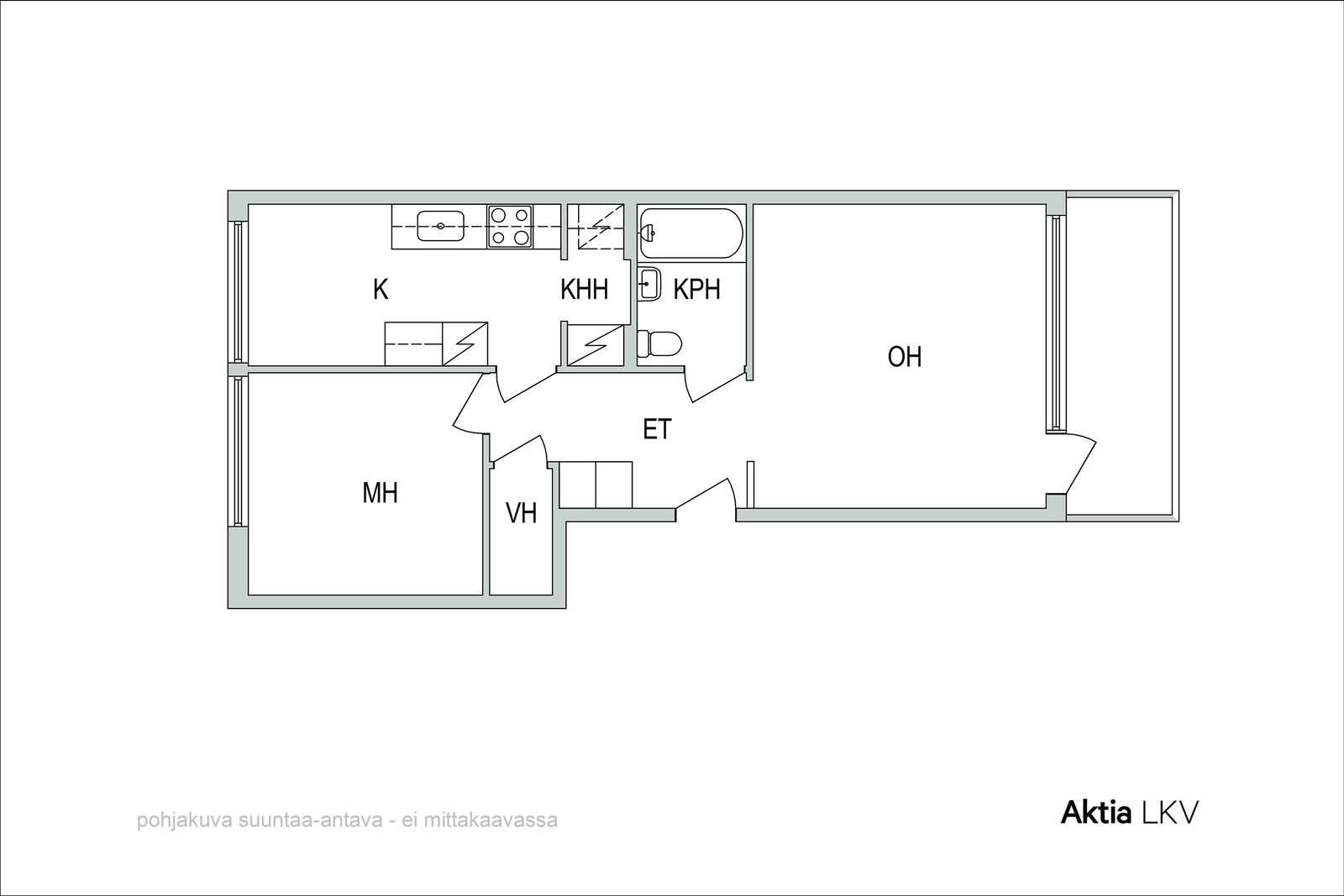Tervetuloa tutustumaan tähän viihtyisään ja hyvin suunniteltuun kaksioon, jossa arki sujuu mutkattomasti. Kodin sydämenä toimii tilava ja valoisa olohuone, joka tarjoaa runsaasti tilaa oleskeluun ja sisustamiseen. Olohuoneen yhteydestä avautuu lasitettu parveke, jossa voi nauttia aamukahvit pitkälle syksyyn.