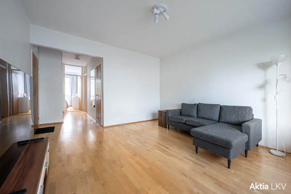 Valoisa kaksio – tilava olohuone ja lasitettu parveke
