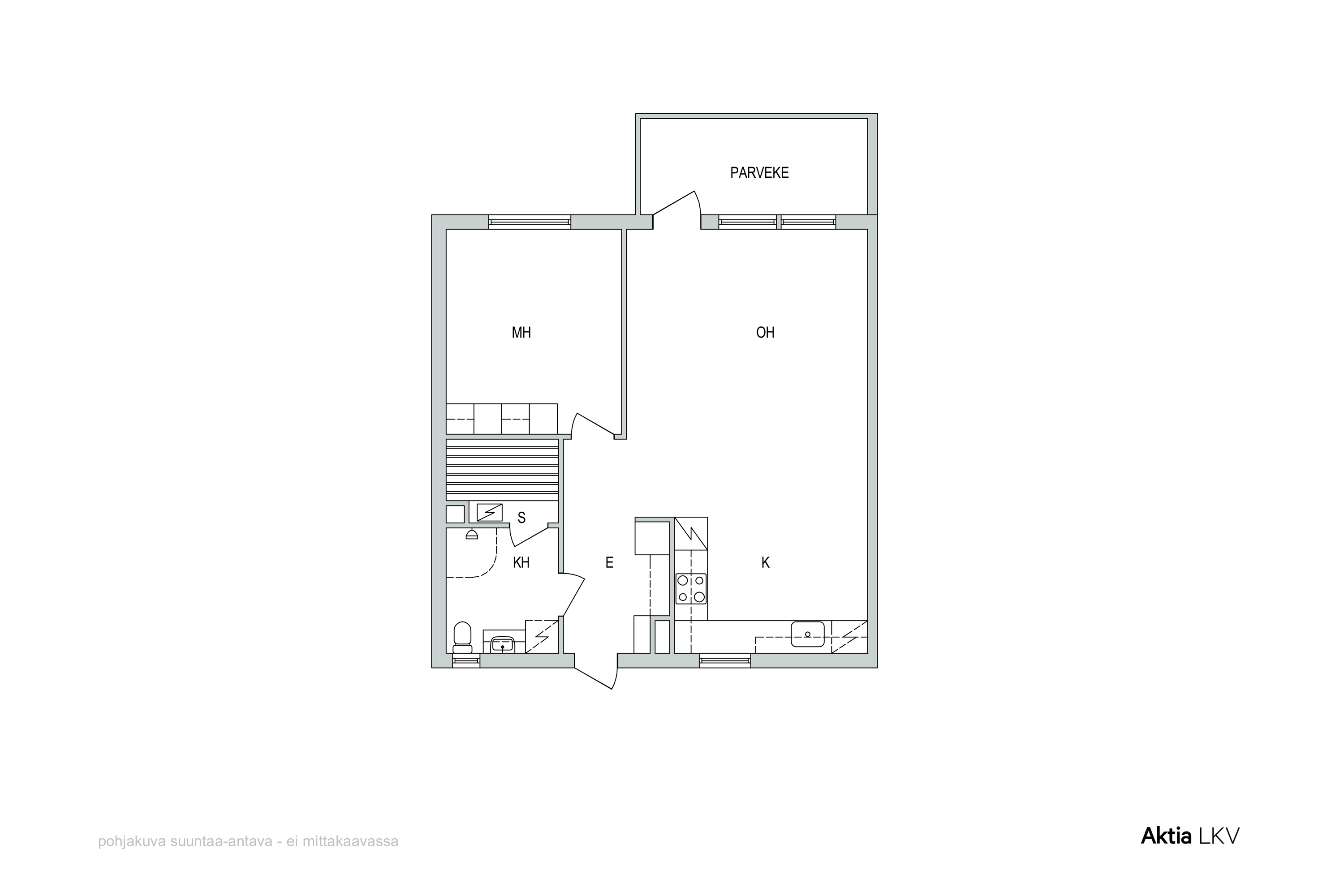 Asunnossa on mukava makuuhuone sekä tilava kylpyhuone omalla saunalla. 60 neliön pohjaratkaisu on huolella suunniteltu, ja koti tuntuu ilmavalta ja toimivalta.