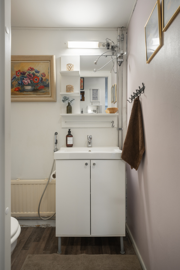 Yhtiöjärjestyksen mukaan huoneisto on kolmio, mutta yläkerran aulatilasta tehty neljäs huone eli käytännössä asunto on neliö!