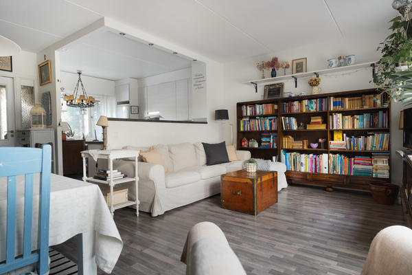 Keittiö suorassa yhteydessä olohuoneeseen, sillä seinä osin avattu olohuoneeseen nuorekkaaksi ja toimivaksi avokeittiöksi.