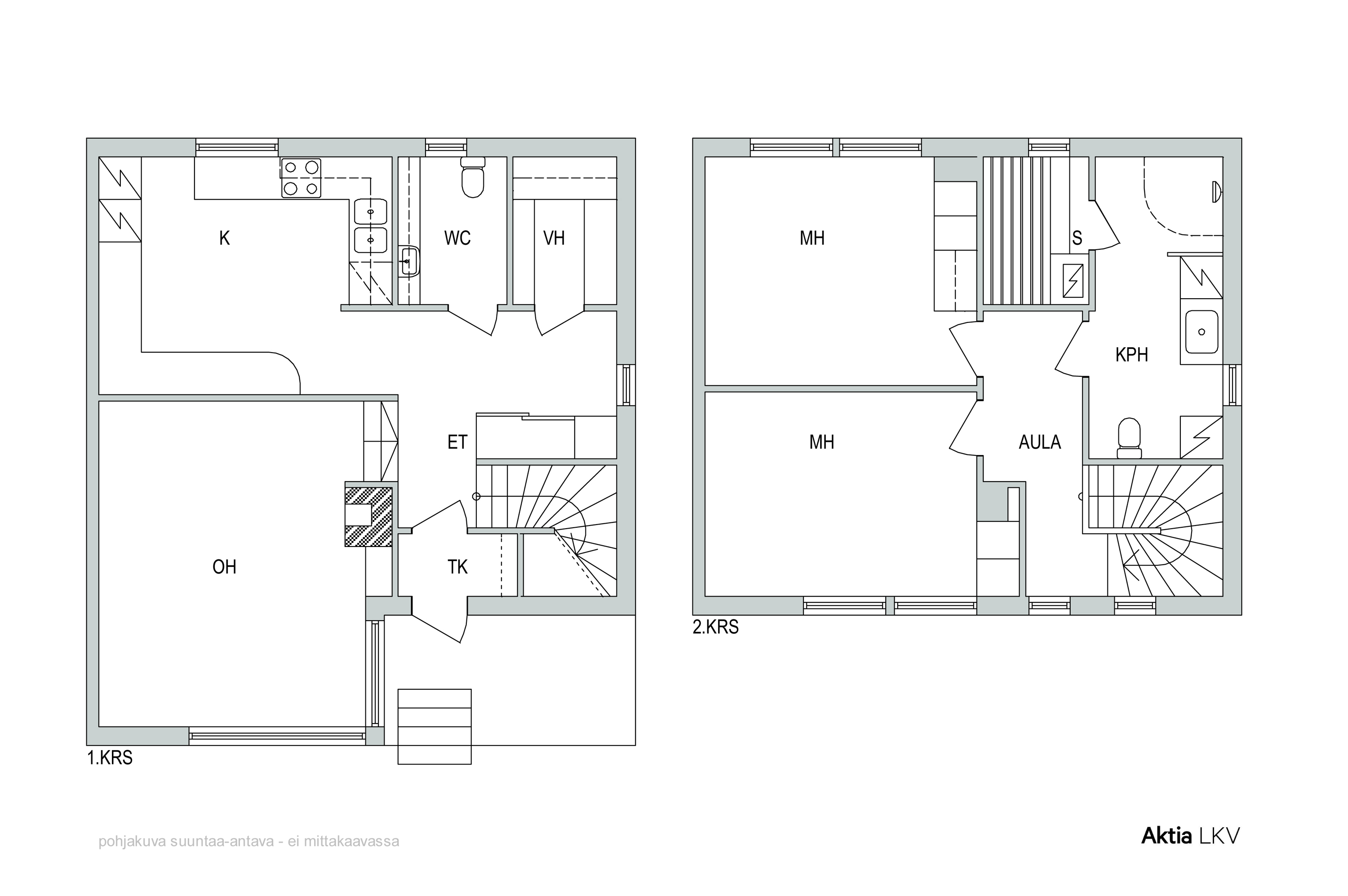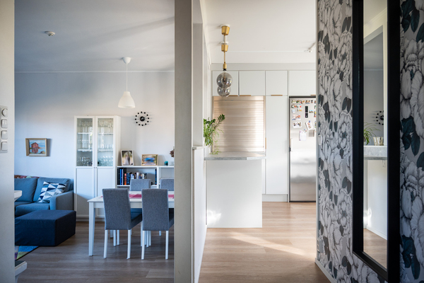 Vuonna 1994 valmistunut koti jakautuu kahteen kerrokseen ja huokuu lämmintä ja kutsuvaa tunnelmaa. Alakerrassa on viihtyisä, tyylikkäästi uudistettu keittiö, jossa on runsaasti säilytystilaa sekä kätevä “aamiaisnurkkaus”, johon kahvinkeitin ja pienkoneet saa siististi piiloon. Kaksi porrasta alempana oleva olohuone luo tilantuntua ja tunnelmaa. Takka takkasydämellä tuo lämpöä ja viihtyisyyttä. Tässä kerroksessa on myös wc ja vaatehuone.