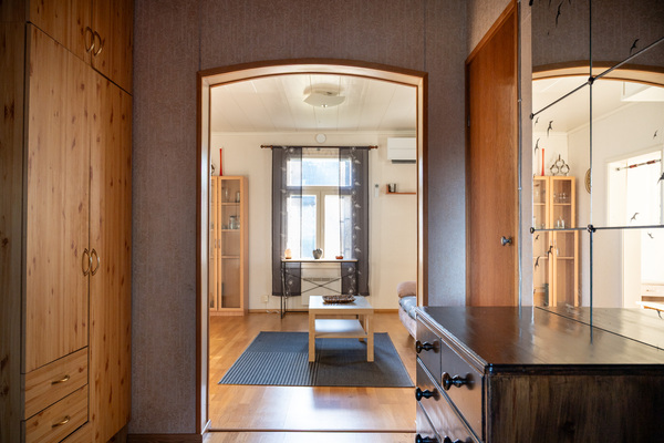 Tämä kodikas talo omalla 1165 m² tontilla huokuu luonnetta ja lämpöä. Talossa on hirsirunko ja puuverhous, ja se on rakennettu vuonna 1920, perinteinen yhdistelmä, joka luo kodikkaan ja aidon tunnelman.