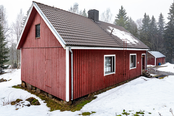 Stockhus från 1930-talet renoverat i slutet av 1980-talet samt stort 75m² bilgarage byggt 2008 på en stor egen 7500m² tomt intill väg 52. Lösöre samt många kommande års ved ingår.Komunalteknik. Fiberanslutning finns vid tomtgränsen.