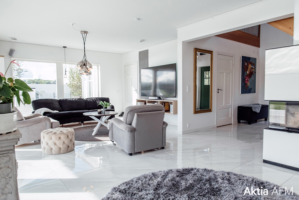 Asuinpinta-alaa on avarat 213 m² ja koti on suunniteltu huolella niin, että valo, tilantuntu ja toiminnallisuus muodostavat harmonisen kokonaisuuden. Suuret ikkunapinnat häivyttävät rajan sisä- ja ulkotilojen välillä ja tekevät merinäköalasta luonnollisen osan arkea. Korkea rakennuslaatu näkyy muun muassa parhaassa mahdollisessa energiatehokkuusluokassa, A.