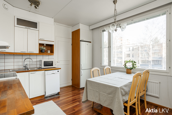 Tämä 97 m²:n kokoinen kerrostalokoti tarjoaa runsaasti tilaa ja toimivan pohjaratkaisun suuremmallekin perheelle. Huoneistossa on neljä huonetta, keittiö, kylpyhuone, erillinen wc, vaatehuone sekä lasitettu parveke etelän suuntaan. Asunto sijaitsee hissittömän talon toisessa kerroksessa.