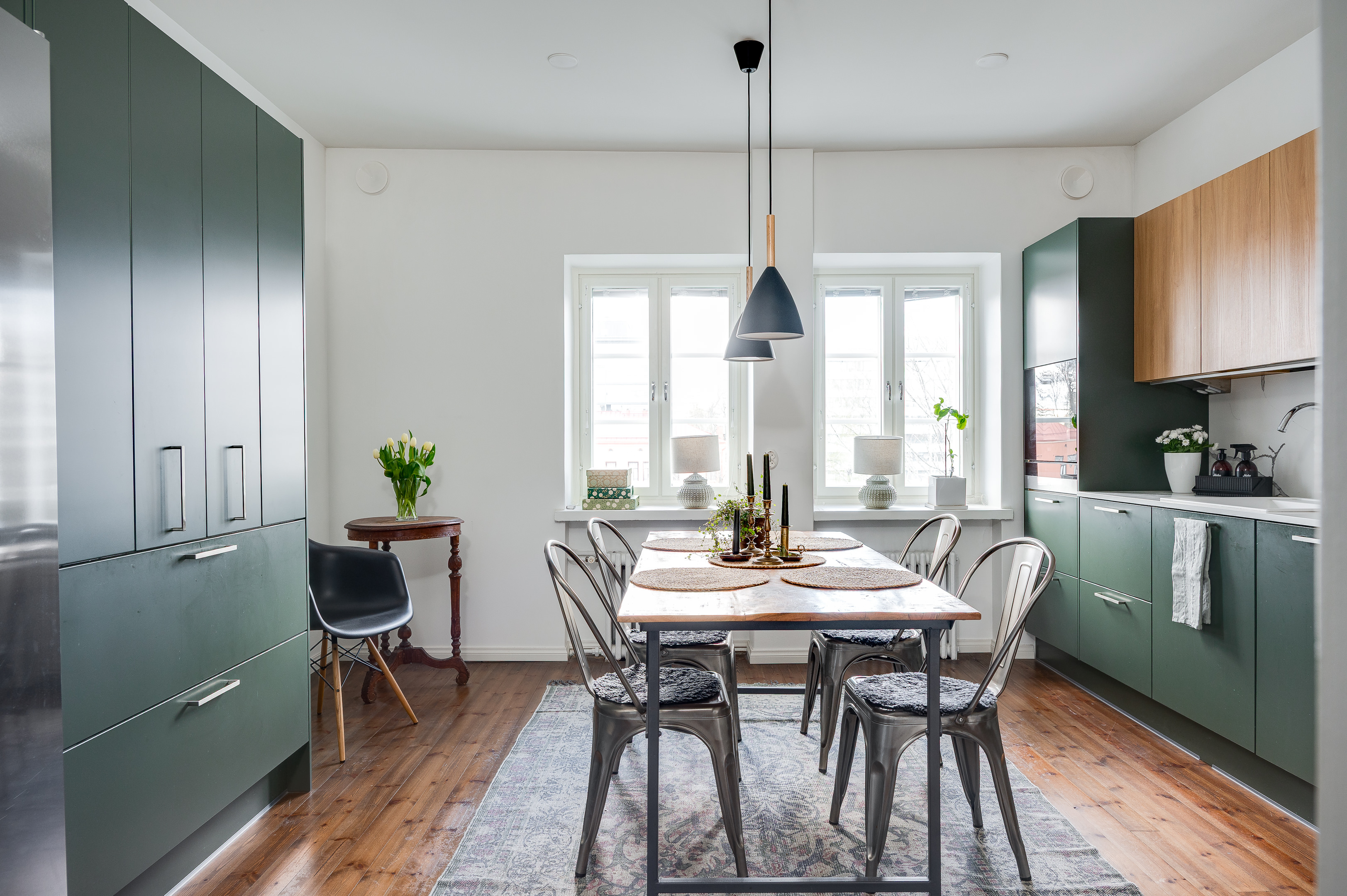 Kodin alkuperäiset yksityiskohdat, kuten kauniit puulattiat, valurautapatterit ja tyylikkäät pariovet, tuovat ajattoman arvokkuuden ja kodikkaan lämpimän tunnelman.