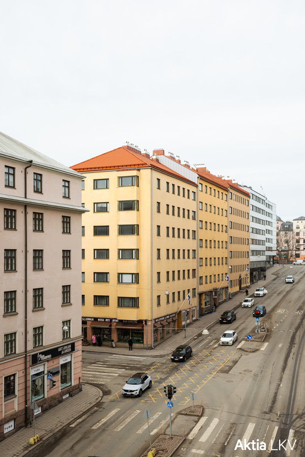 Asunto sijaitsee hissitalon 5. kerroksessa, ja sen läpitalon pohjaratkaisu tuo mukavasti valoa ja avaruutta. Olohuoneesta on käynti lounaaseen suuntautuvalle parvekkeelle, josta avautuvat kaupunkinäkymät Aninkaistenkadulle. Keittiö ja makuuhuoneet sijoittuvat rauhallisen sisäpihan puolelle – täydellinen yhdistelmä urbaania sykettä ja omaa rauhaa.