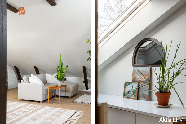 Alakerrassa sijaitsevat kaksi tilavaa huonetta, keittiö, wc, suihkutila sekä parveke. Yläkerran avara tila tarjoaa monipuoliset mahdollisuudet, sillä se muuntuu helposti makuuhuoneeksi, olohuoneeksi tai vaikkapa nuoren omaksi valtakunnaksi. Näyttävät kattoparrut, kattoikkuna sekä puolikaaren muotoinen ikkuna tuovat tilaan luonnetta ja valoa. Yläkerrassa on myös oma wc.