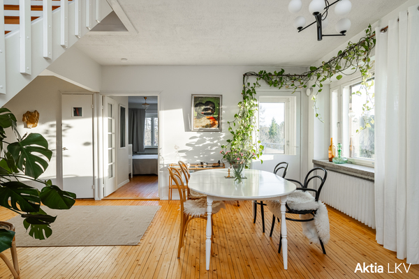 Kodissa yhdistyvät 50-luvun viehättävät yksityiskohdat ja ajaton asumismukavuus. Kauniit lautalattiat, leveät ikkunalaudat ja runsas luonnonvalo luovat lämpimän ja kutsuvan tunnelman.