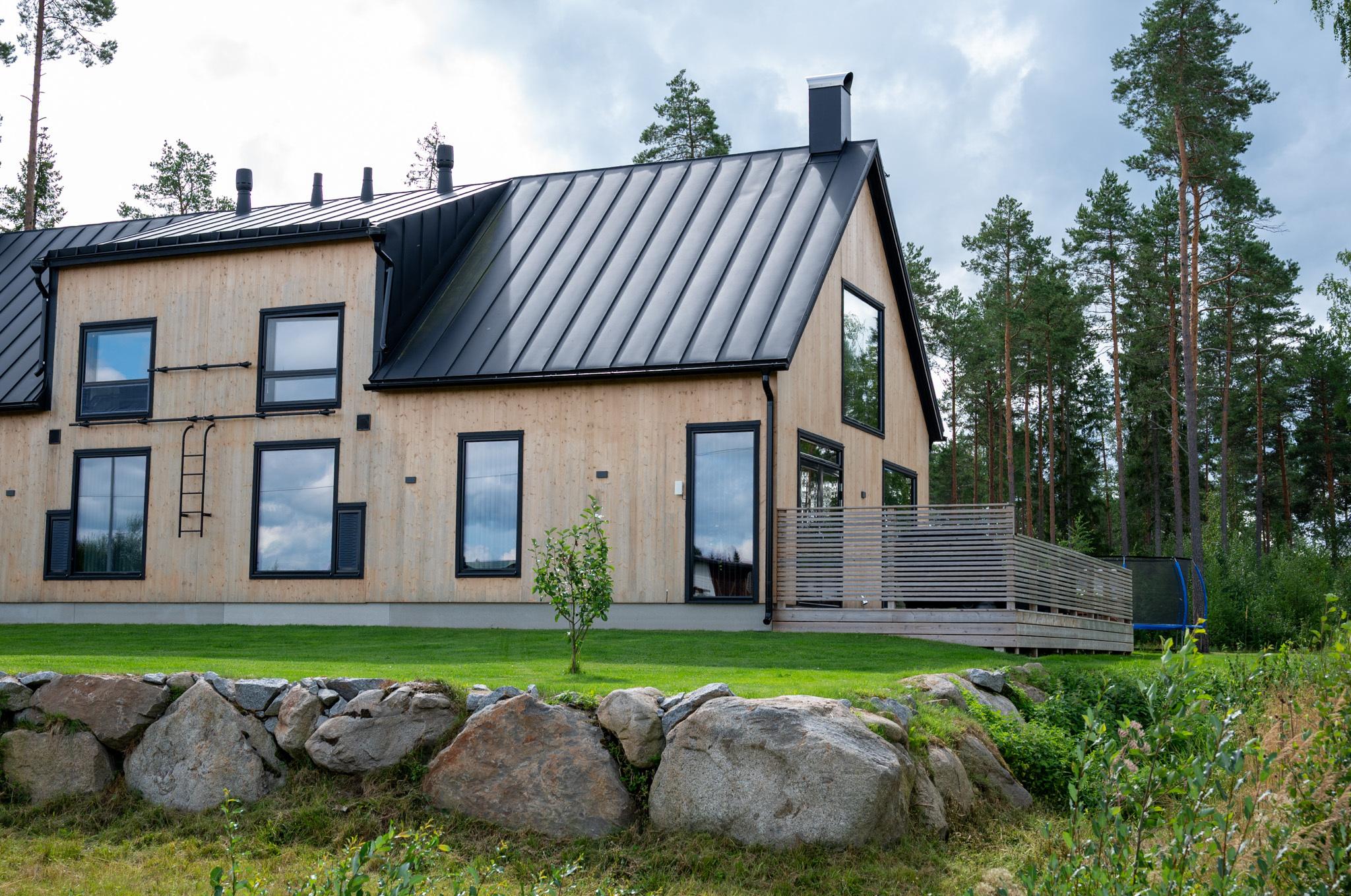 Tyylikäs ja moderni paritalo – rakennettu CLT-elementeistä, luonnon rauhassa.