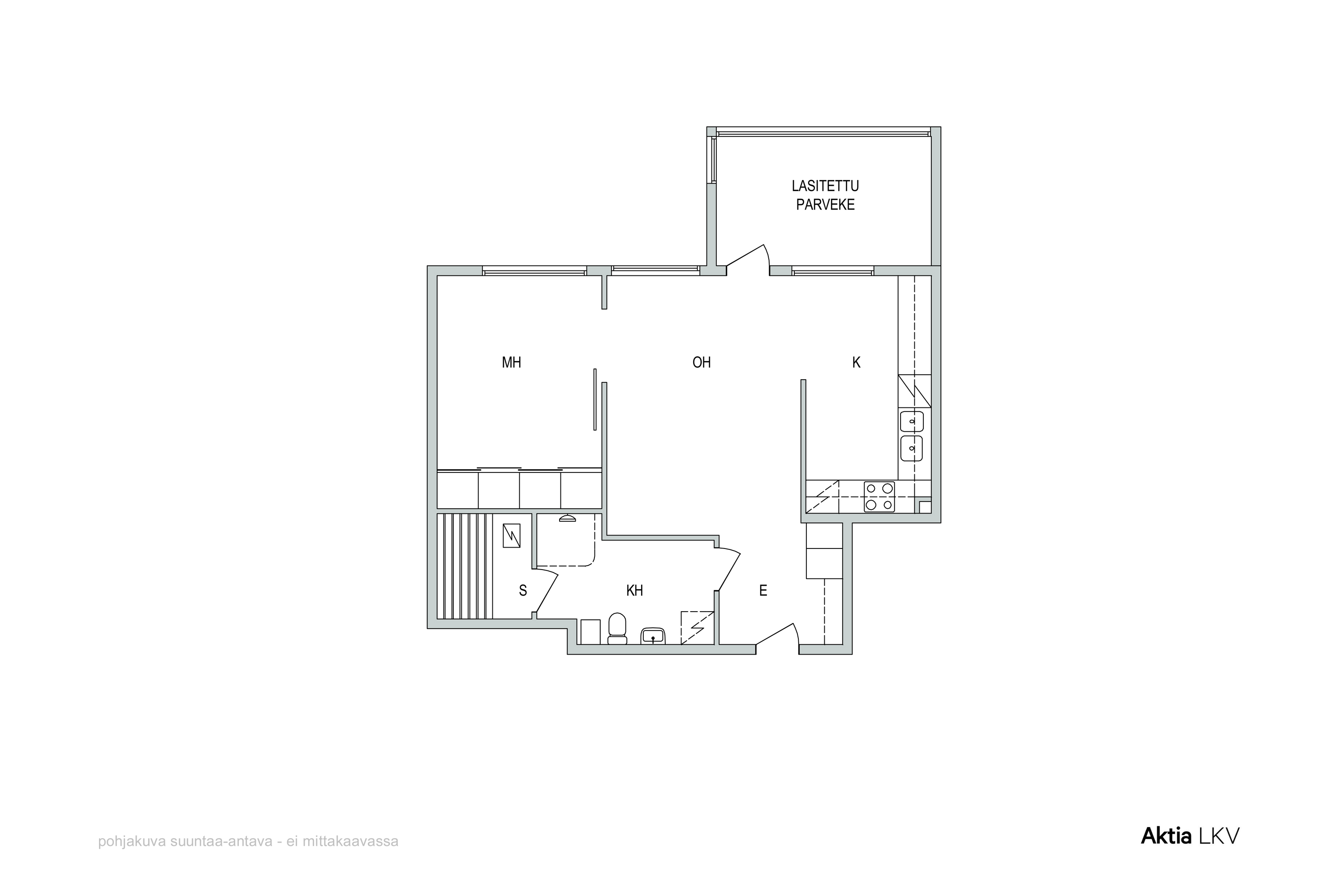 Kodissa on toimiva pohjaratkaisu ja oma sauna. Isolta lasitetulta parvekkeelta näkymät etelään. Pinnoiltaan asunto on ikäisekseen siistikuntoinen ja vuosien mittaan pintoja ja kodinkoneita on myös päivitetty. Keittiön ja olohuoneen parkettilattia on uusittu jokunen vuosi sitten, makuuhuoneessa alkuperäinen parkettilattia.