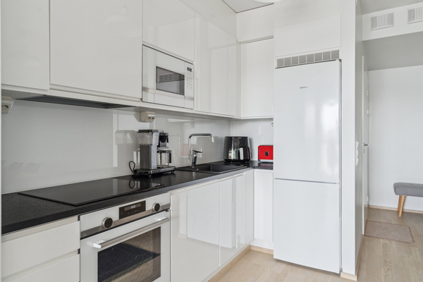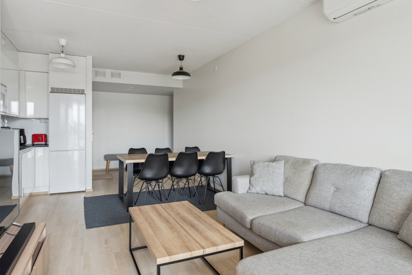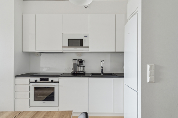 Vuonna 2020 valmistuneessa yhtiössä ylimmässä kerroksessa sijaitseva kaksio avarin näkymin yli Espoon keskuksen. Asunnossa on erinomainen avara pohja ja koko huoneiston levyinen lasitettu parveke. Olohuone, keittiö ja ruokailutilat ovat yhtä isoa yhtenäistä tilaa. Kylpyhuoneen yhteydessä oma sauna ja makuuhuoneen yhteydessä tilava vaatehuone. Tyylikäs hyvin pidetty koti. Asuntoon on asennettu myös ilmalämpöpumppu viilentämään kesän helteitä.