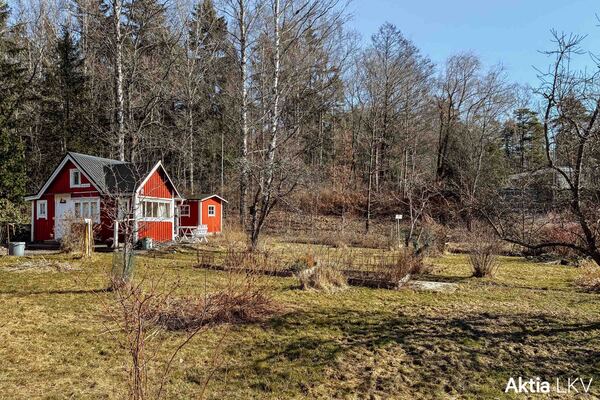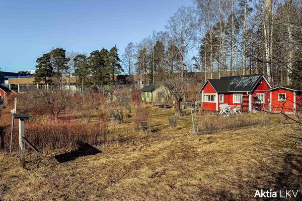 Mysig stuga med en av Brunakärrs koloniträdgårdsföreningens största lotter, ett fynd för den som trivs i trädgården.
