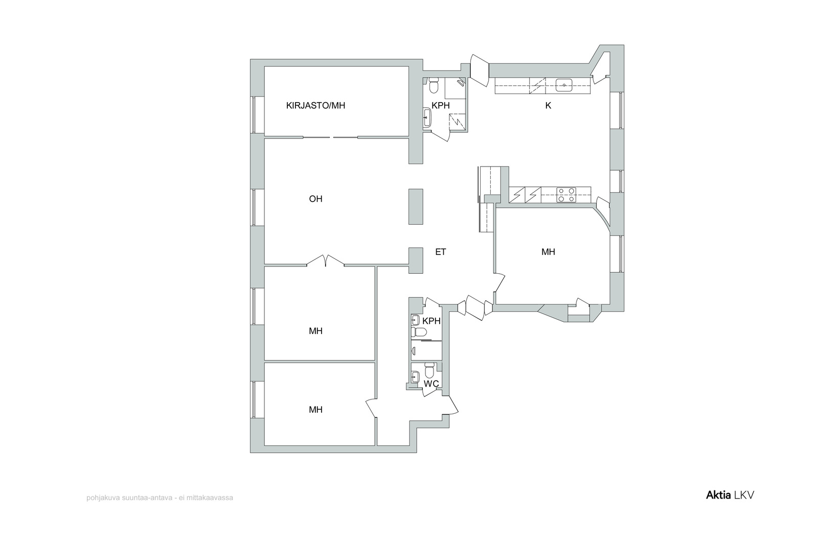 Asunto käsittää tilavan eteishallin, ison erillisen keittiön, avaran olohuoneen, kolme makuuhuonetta, kirjaston (tai neljännen makuuhuoneen), kaksi kylpyhuonetta ja erillisen wc:n. Hemma Bäst on kauttaaltaan kunnostanut tämän huoneiston erittäin hyvällä maulla ja laadukkain materiaalein. Suuri, tasokas ja hyvin varusteltu keittiö täyttää vaativankin ruoanlaittajan tarpeet.