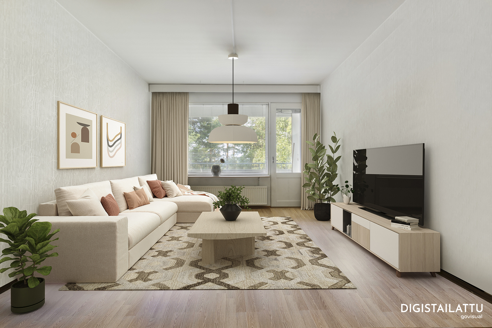 Tilavasta olohuoneesta käynti suoraan lasitetulle parvekkeelle, mistä voit seurata vuodenaikojen vaihtelua luonnonläheisestä maisemasta. Eikä ole heti toista taloa vastapäätä.