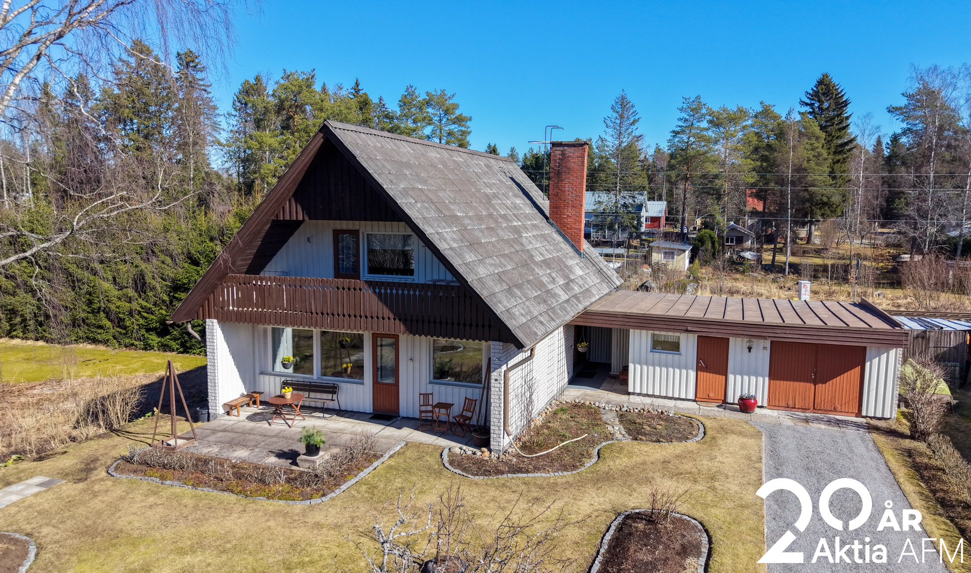 På tomten finns fina planteringar som skapar en trivsam utemiljö att njuta av. Intill bostaden finns även ett isolerat garage som ger extra bekvämlighet i vardagen.