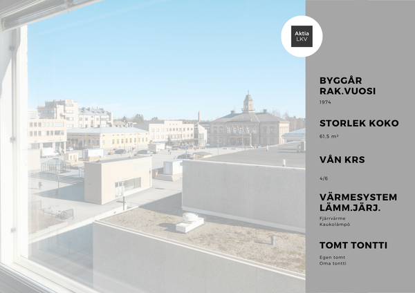 Drömmer du om att ha stadens puls utanför dörren, samtidigt som du bor tryggt och bekvämt? Denna ljusa lägenhet på 4:e våningen i ett omtyckt hisshus i Jakobstads centrum erbjuder just det. Här får du ett läge som är svårt att slå, med utsikt över torget och Otto Malmsgatan – en levande vy som ger känslan av stadsliv direkt hemifrån.