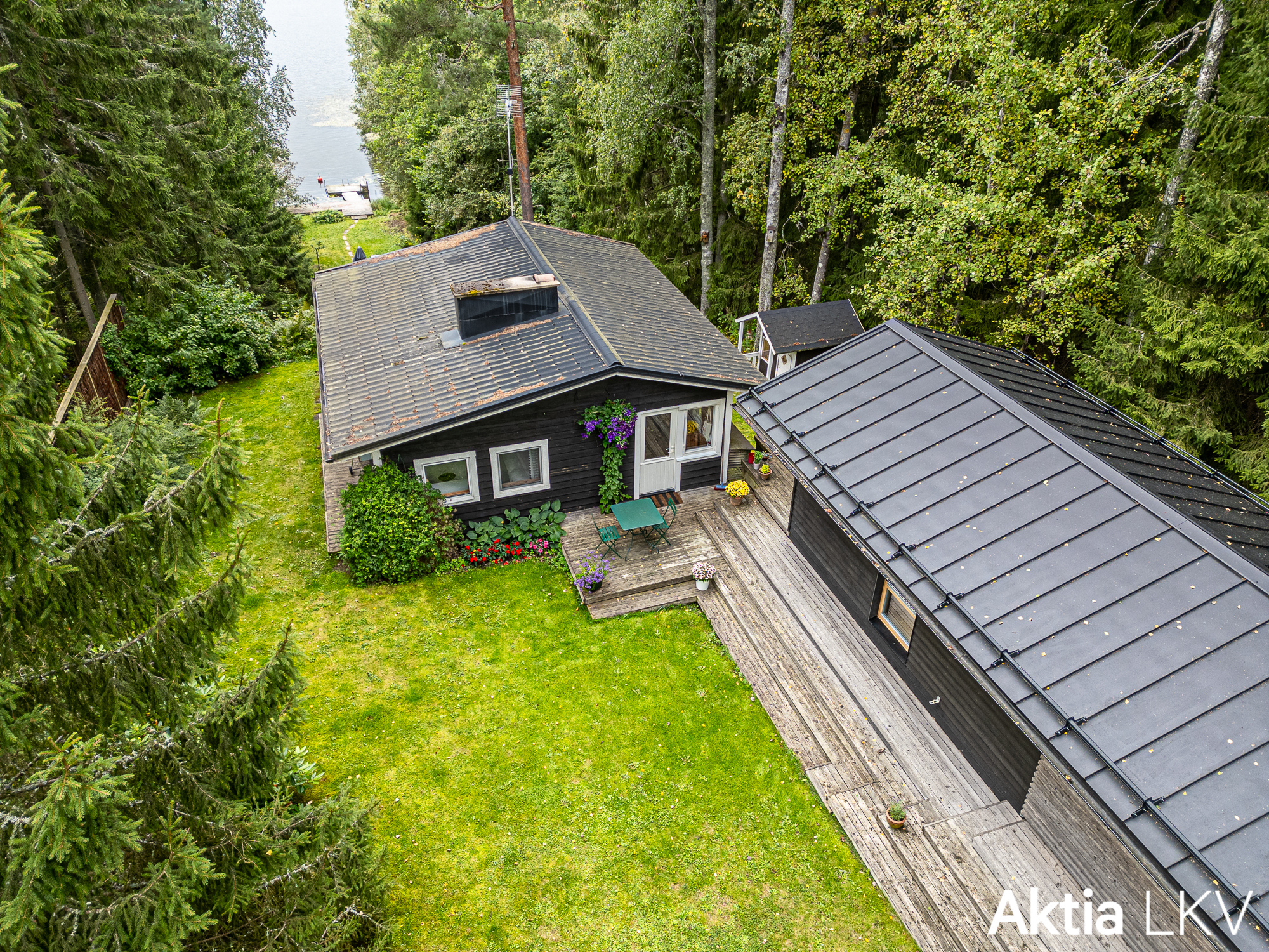 Tämä upea kesäpaikka on kolmen rakennuksen kokonaisuus. Alkuperäiseltä mökiltä on hieno näkymä järvelle! Mökin lämminhenkinen olohuone, moderni keittiö ja omalla sisäänkäynnillä oleva makuuhuone yhdistyvät kätevästi talon moniin terasseihin. Takapiha muodostaa uudisrakennuksen kanssa ihanan sisäpihan, joka on osittain aidattu. Täällä perheen pienimpienkin on turvallista leikkiä.