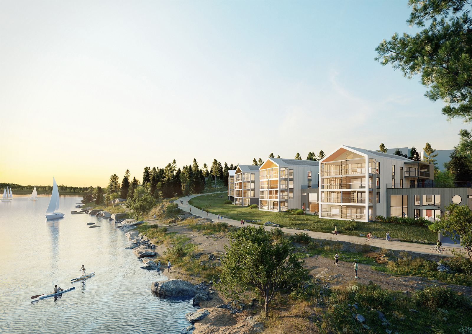 I nära samarbete med den prisbelönta arkitektbyrån ARCO har vi skapat en fasad som både smälter in i och framhäver Mariehamns unika läge. Arkitekturen återspeglar områdets naturliga skönhet och rika historia, samtidigt som den erbjuder en modern elegans som passar perfekt in i denna exklusiva miljö.