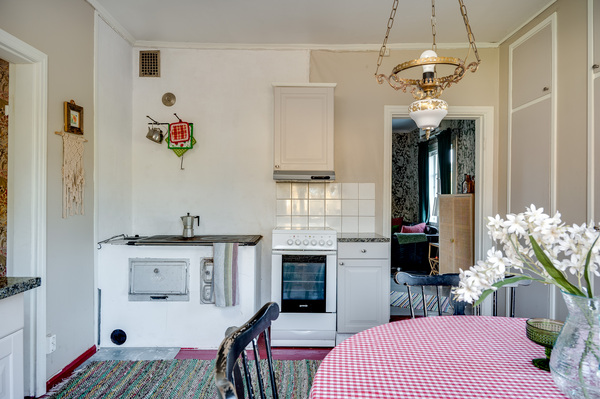 Tässä kodikkaassa omakotitalossa yhdistyvät viihtyisä tunnelma, kauniit paperitapetit ja lautalattia.