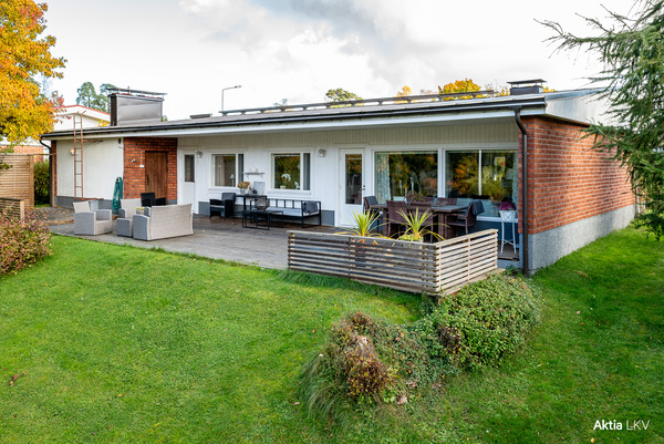 KNIPNÄS Inbjudande, förvånansvärt rymligt, trevligt hus erbjuder här trevliga omständigheter för t.ex. en barnfamilj precis intill skolor och hobbyer! Detta personliga hem andas -60 tal men erbjuder alla bekvämligheter man kan förvänta sig av ett modernt hem. Stora reparationer gjorda i bolaget, bl.a. yttertak, fönster, kök, badrumsavdelning motsvarande dagens standard och uppvärmningen sköts av underhållsfri fjärrvärme. Underbar, egen, privat tomt samt megastor terass som öppnar sig mot eftermiddags- och kvällssolen. Boka din egna visning med mäklarn!