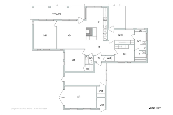 3 mh, oh, avok, parvi, ruokailut, kph, khh, wc x 2, vh, s, at/varasto