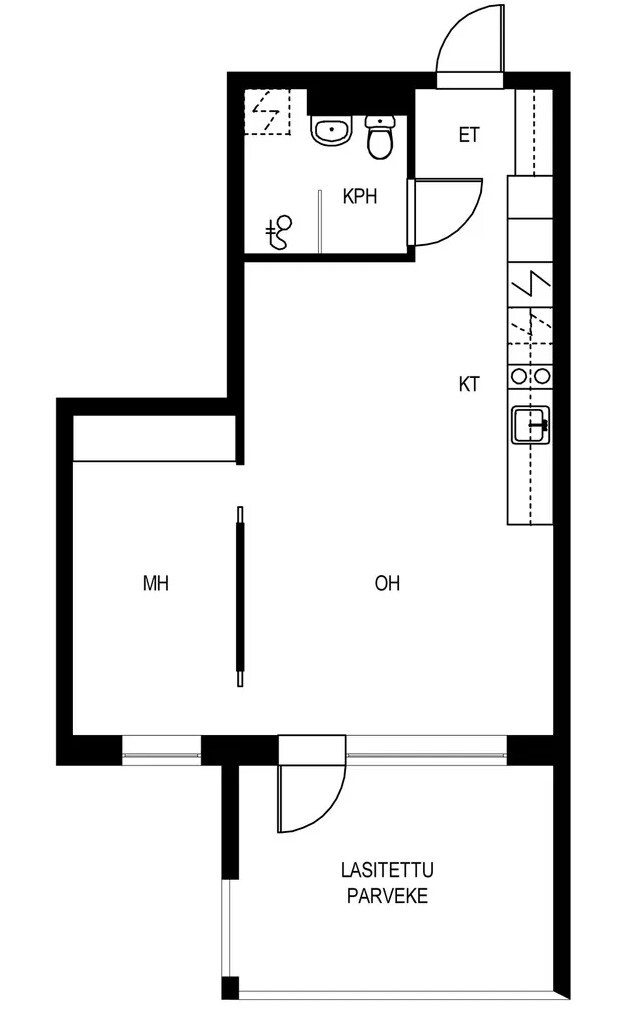 Viihtyisä kaksio toisessa kerroksessa. Iso lasitettu parveke merinäköalalla. Rauhallinen sijainti lähellä keskustan palveluita.